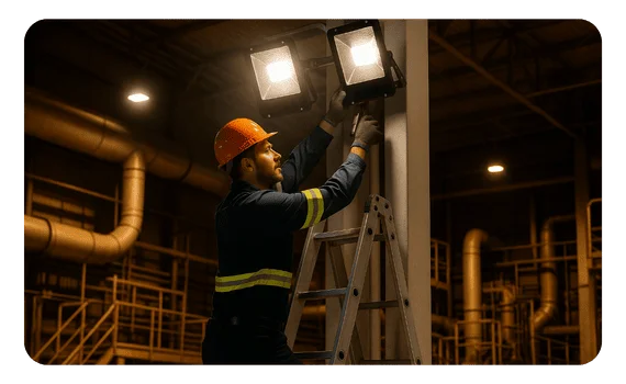 Iluminamos plantas industriales con sistemas eficientes y duraderos, optimizando la productividad, creando entornos de trabajo más seguros y confiables.