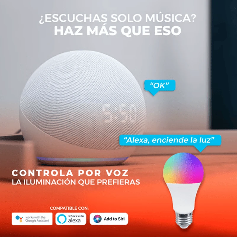 – Compatible con Alexa, Google Assistant y Atajos de Siri.