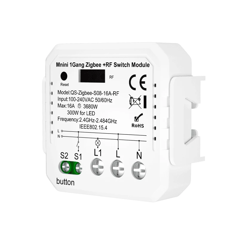 El Interruptor inteligente remoto SNS08RFMVZ es un conmutador para una zona de iluminación, diseñado para encendido y apagado de manera local o remota mediante el controlador Construlita Connect. Utiliza el protocolo ZigBee 3.0, ofreciendo mayor seguridad, confiabilidad y compatibilidad con otros dispositivos certificados Construlita Connect.